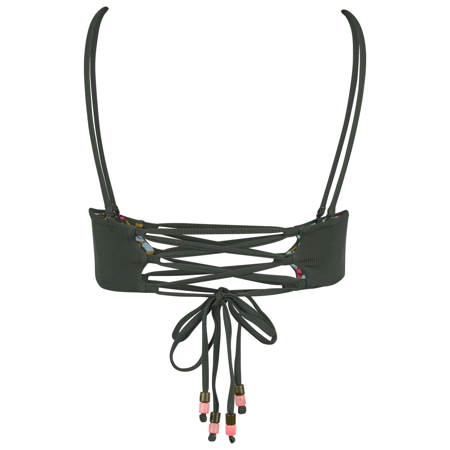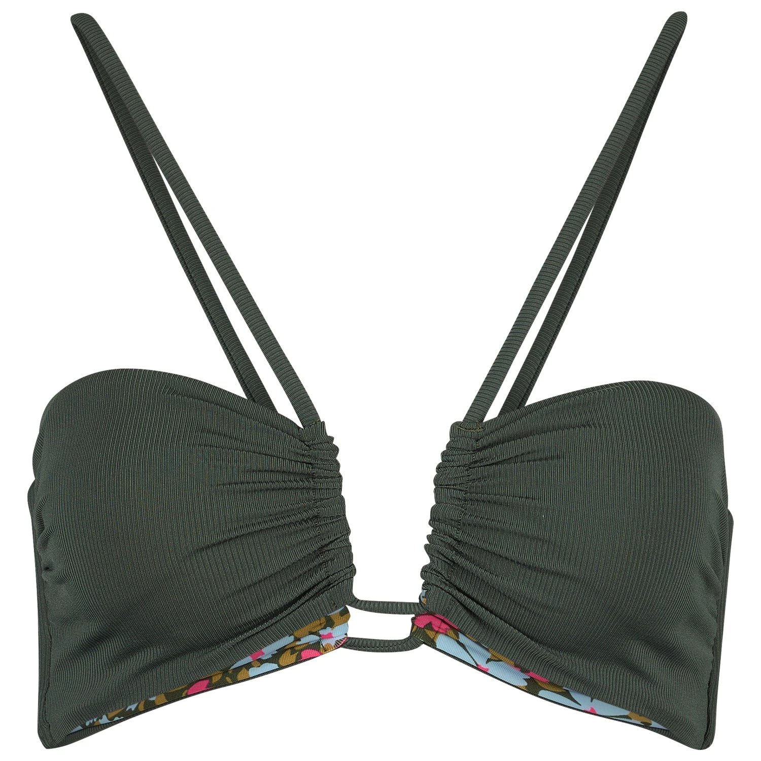 Das Women’s Crocodile Green Ursule Bikini-Top von Maaji fällt dank des besonderen Schnitts sofort ins Auge. Es ist wendbar und damit vielseitig tragbar. Dank der Schnürung im Rücken, kann es individuell angepasst werden. Das florale Muster einerseits und der klassische und zeitlose Look andererseits machen das Bikini-Top zu einem echten Allrounder.