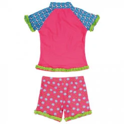 Das Kid’s UV-Schutz Bade-Set Blumen von Playshoes besteht aus einem Oberteil mit Reißverschluss und einer Hose. Mit ihnen können die Kleinen nicht nur im Wasser, sondern auch am Fluss oder dem Brunnen auf dem Spielplatz herumtoben. Das Gewebe ist auf Schadstoffe geprüft und schützt die empfindliche Kinderhaut vor Sonnenbrand.